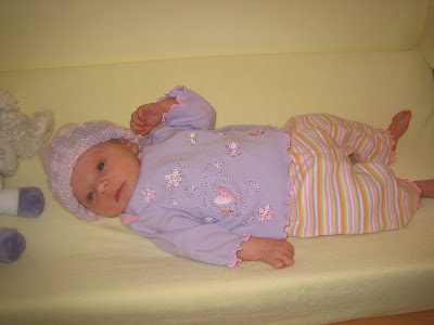 Our first morning without Daddy home, the girls did great!All bundled up after her bath. She looked so comfortable.