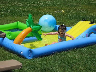 Holly enjoying the slide in her pool on Sunday…