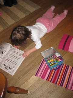 Allison really likes to color… a lot. She holds the crayon really well, even better than Holly does. And she tries to color in the objects, but of course she still goes outside the lines. We have plenty of time to perfect that. She would prefer to use markers, but since she likes to write on things other than paper, she is only allowed to use crayons. She doesn’t really like that, but for now she has to listen.