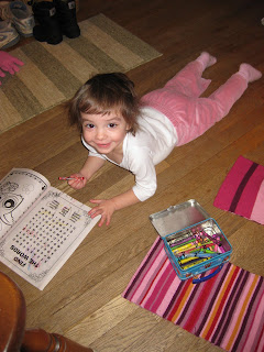 She likes to write also. If you write her name, she’ll write right over it, as if she is tracing. It’s cute. It’s another way of her copying what we do. She likes to follow Holly around the house and do exactly as she does. I am going to pull out the little potty hoping that maybe she’ll copy her sister doing that, though I’m not to hopeful. She is still small but no one says she can’t potty train now. Her diaper is barely wet in the morning most days so I am hoping to get her on there first thing in the morning. We’ll see how that goes.