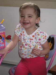 Since Allison was sick her appitite has picked up tremedously! She’s snacking more than she ever was before and that’s ok because she only weighs 23lbs!!! and she’s almost 2. So I’m happy that she finally has more of an appitite. She was enjoying a cheese sick the other day and just looked so cute, of course. And I got the cutest smile too.