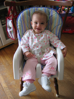 Oh she is really growing 🙂 That smile on her is precious. Glad she is feeling better.