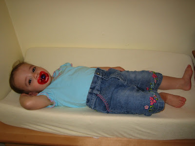 And while changing her tonight, I realized she is the entire length of the changing table. The pacifier is a result of her being tired. See below for that story.