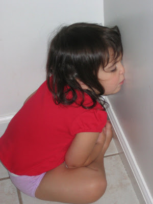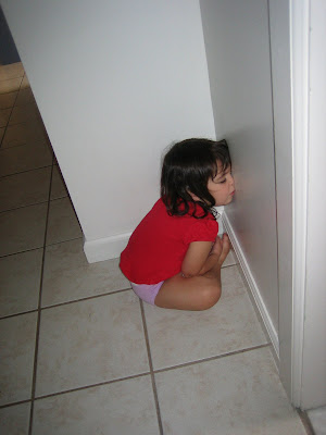 And finally, Holly has been spending a lot of time in Time Out lately. She has been expressing herself a little too much trying to tell Mommy what to do. It wasn’t fun this afternoon, partly because she was exhausted as well. She was sent to time out for not listening to me and talking back to me (yes she thinks she’s a teenager all ready!). While there, she turned around to face the wall because she ‘didn’t want to see me’.