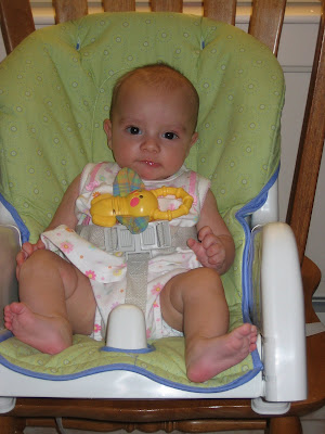 Another ‘fun’ seat for Allison. It’s a highchair/booster seat that reclines so you can use it for newborns. This will be her permanent highchair when she starts eating, but for now we keep it at my mother’s house so she has some place to sit while we eat when we are there. She really likes being in there too. It looks so comfortable, I can’t blame her.