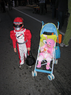 So we headed downtown Westerly and it was such a FUN night! Holly just loved it so much and so did we. They block off the main street downtown and the store owners all stand outside the stores to give out candy. It was so cool seeing all the little (and big) kids dressed up in their costumes. Allison just sat in the stroller just taking it all in, kicking her feet, and watching all the people. She didn’t make a sound but didn’t fall asleep either! She seemed to enjoy herself too.