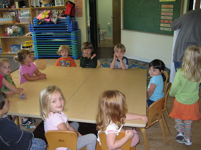 When we got there she was a little shy. We met a few of her new classmates, they were all very friendly and eager to be her friend. I thought it would take her a while to settle in but NOPE, she was shy for about 5 mins and that was it. She sat at the table ready to have breakfast with the rest of the kids so Allison and I left.
