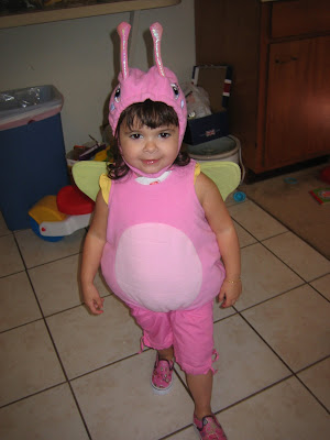 Mommy and her girls….This is actually Allison’s halloween costume but Holly wanted to put it on, it’s pretty small on her, though it doesn’t look that small……Allison is probably going to be swimming in it. Since Holly liked it so much, I got her one too that will fit her better. She lookedso cute in it though.
