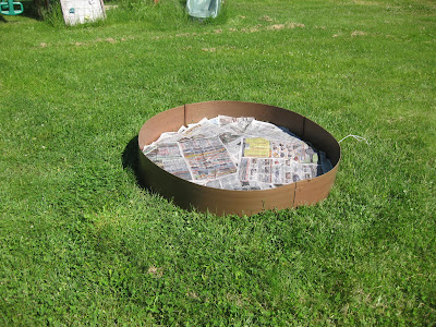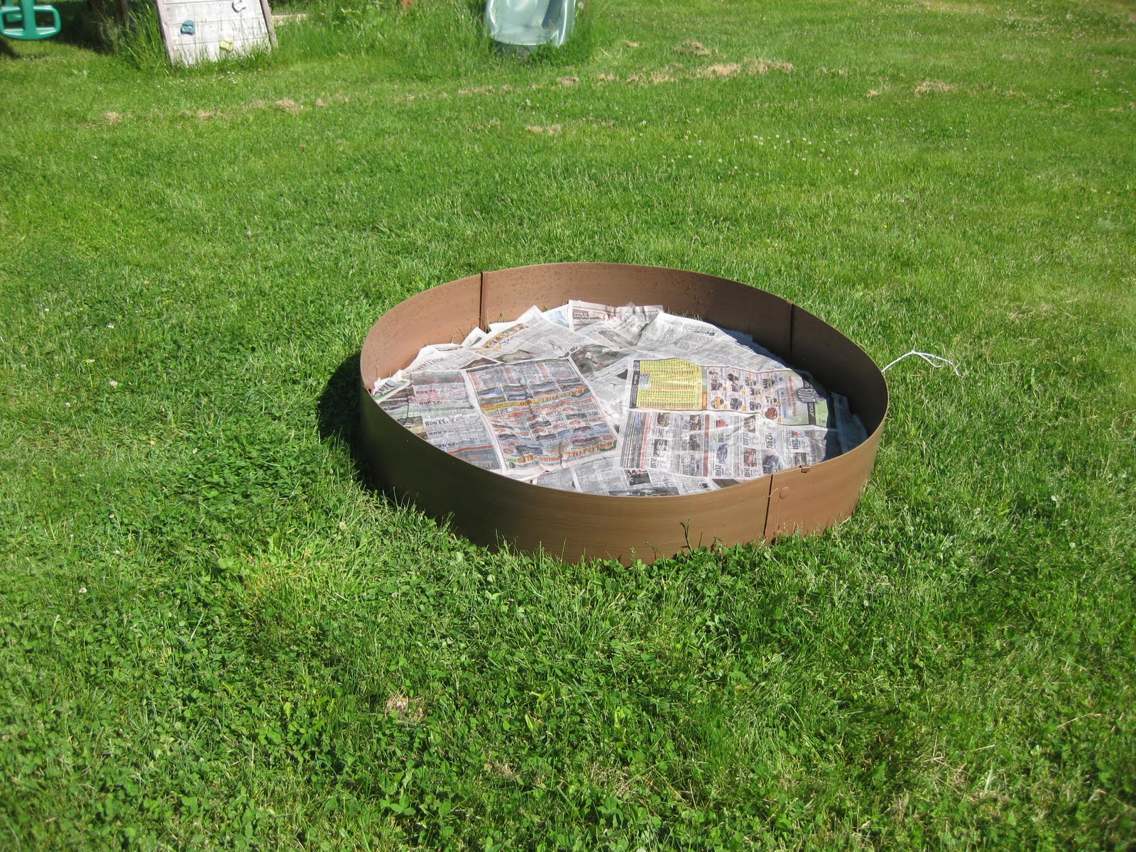 Then I put down newspaper and then soaked it. This will help to kill the grass underneath and stop the weeks from coming through. I don’t need anymore weeds, we have plenty.