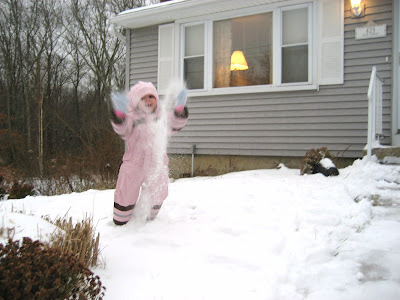 And second, those snow pictures are SO CUTE! I love the one of her tossing the snow up in the air.