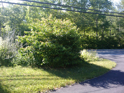 He couldn’t cute them down anymore because the branches are very thick from not cutting them for about 3 years and last year Steve started cutting some of them then the hedge trimmers jammed and he never got back to it so the right hand side is a little lopsided because of not being able to even it off, but it doesn’t look bad in person, barely noticable but I noticed it looks weird in the picture above. In the fall we need to cut them back a lot when the leaves are gone.