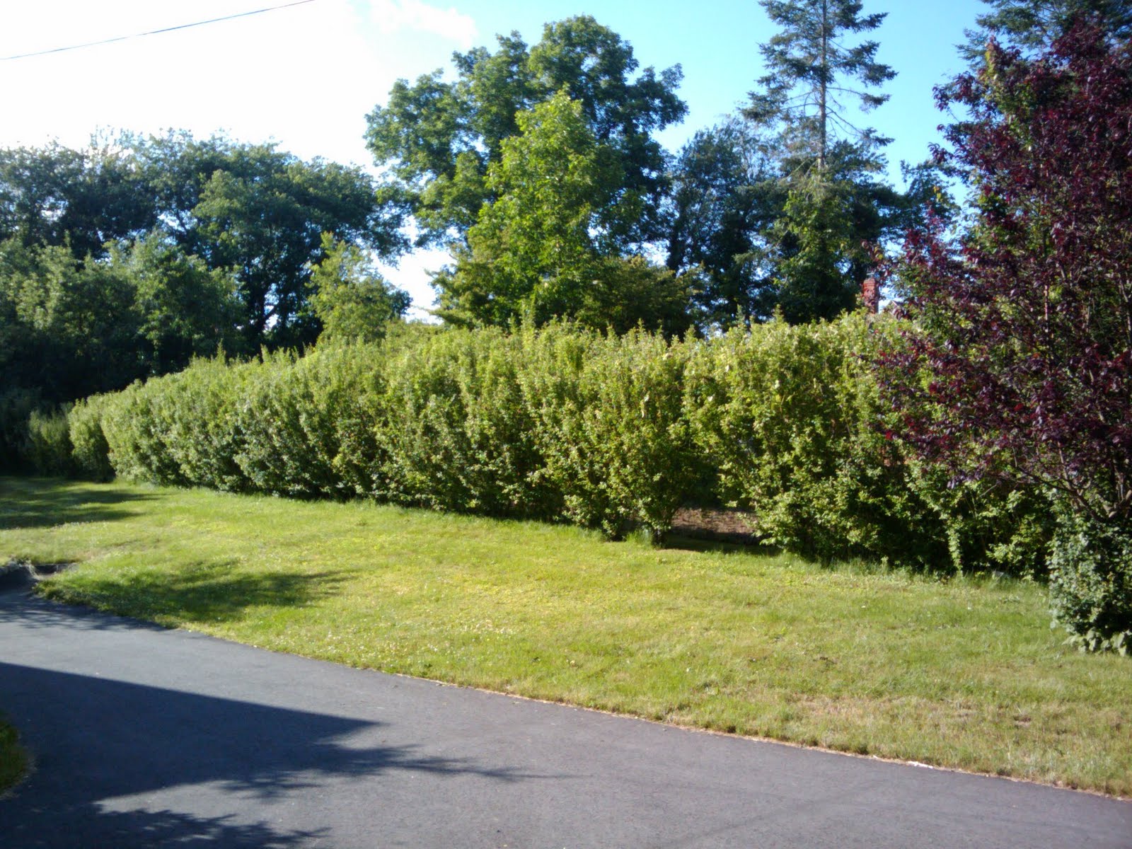 And the hedges along the side of the yard. Again they are so big he did the best he could to shape them due to the thick branches. In the fall we’ll cut those back a bit more too.