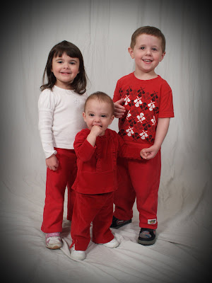 When I dressed the girls one day I happened to but them both in red, I didn’t plan that but, when Jodi saw what they were wearing, she decided to put David also in red so they all matched. She lined them up on the couch to take a picture because they looked so cute!