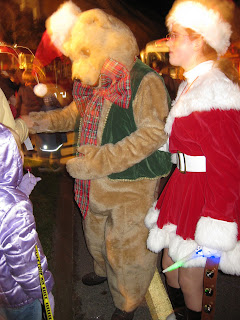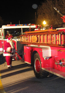 Last Friday night Santa arrived in town on the local fire truck. I guess the reindeer aren’t ready to travel yet. After dinner we gathered with everyone else to await Santa’s arrival. This was the first time we were there to greet him so we had no idea what to expect.