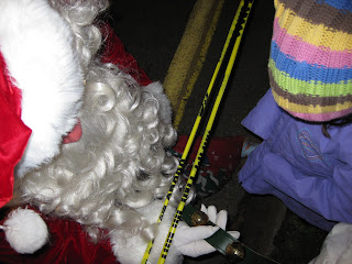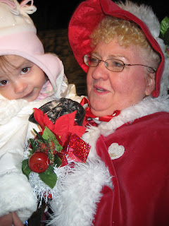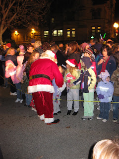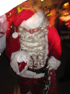 The girls were becoming impatient so we gave them so lollipops to buy some time and it worked, very well. When Santa finally arrived he began to visit the children in the crowd but unfortunately we were in the wrong spot. We are at the end, but we didn’t know that so we waited and waited until it was our turn. In the meantime Santa had all sorts of helpers there to entertain and visit the crowd and the girls loved it.