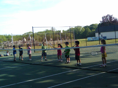 Allison wanted to play too, but she’s too young. You have to be 5. But all in all she did really good. She sat on the edge of the court and gathered the balls as they were hit into the grass. She was very proud to be able to help out.