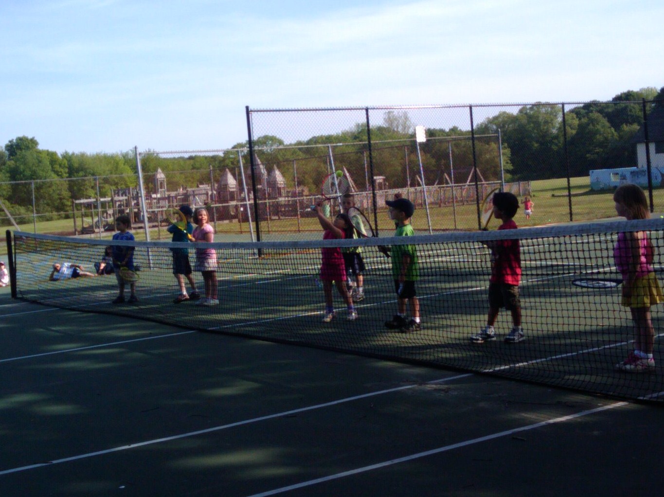 Now of course I’m her mom so I’m going to say she did good, but really she did good! The first ball Sarah tossed to her she hit, right over the net. OK, granted she was standing only about 5 feet from the net BUT not all the kids hit it over the net. AND she held the racket correctly and swung it exactly as Sarah told her too, which again some kids did not do properly. So yes, this mama was proud of her, she was a natural.