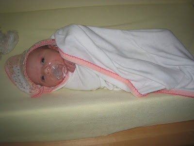 Our first morning without Daddy home, the girls did great!All bundled up after her bath. She looked so comfortable.