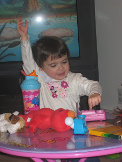 Then later in the day my father, brother, sister in law and nephews came over to visit and have some pizza. Holly was very happy to show off her new room to them too. She LOVES playing with her cousins and they had a great time too. It was a nice visit and it really wore Holly out, she was exhausted. After her cousins left she played with Papa in her room while Nonnie took a snooze, then Papa took a snooze and she played with Nonnie in her room. She had a blast.