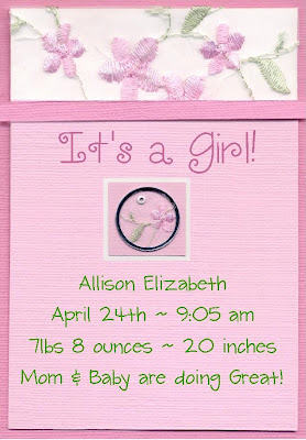 CONGRATULATIONS KAREN and FAMILY!!! I’m so happy to hear everything went well and little Allison is doing great!! I can’t wait to see some pictures!!