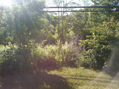 He couldn’t cute them down anymore because the branches are very thick from not cutting them for about 3 years and last year Steve started cutting some of them then the hedge trimmers jammed and he never got back to it so the right hand side is a little lopsided because of not being able to even it off, but it doesn’t look bad in person, barely noticable but I noticed it looks weird in the picture above. In the fall we need to cut them back a lot when the leaves are gone.